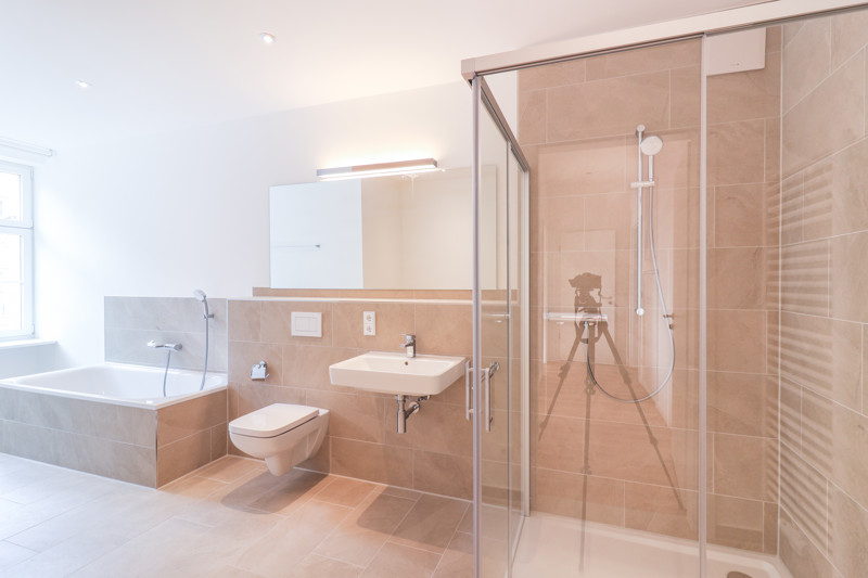 Früher bekannt als „Baderhaus“, treffen heute im „Baderhome“ Tradition und Moderne aufeinander – von außen eine wunderschöne barocke Fassade mit altehrwürdigem Charme, von innen 29 hochmoderne Neubau-Wohnungen mit einzigartigen Grundrissen für Individualisten mit Anspruch an höchsten Wohnkomfort: Eichenparkettboden mit Fußbodenheizung, dreifachverglaste Schallschutzfenster, hochwertige und vollständig ausgestattete Einbauküchen mit Markengeräten, Malervlies als Wandverkleidung, modern geflieste Bäder mit Markenarmaturen, Gegensprechanlage mit Videofunktion, Breitbandkabelanschluss in allen Räumen und viele Annehmlichkeiten mehr. Die meisten Wohnungen verfügen über einen Außenbereich in Form eines Balkons oder einer Dachterrasse. Eine Aufzugsanlage bringt Sie bequem auf Ihre gewünschte Etage. Ein Hausmeisterservice kümmert sich liebevoll um die Pflege und Instandhaltung des Objektes und der Außenanlagen.