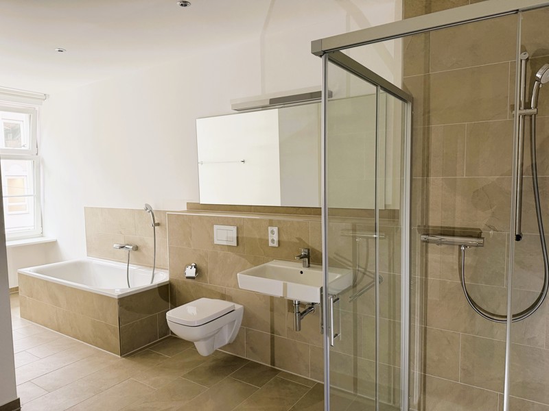 Früher bekannt als „Baderhaus“, treffen heute im „Baderhome“ Tradition und Moderne aufeinander – von außen eine wunderschöne barocke Fassade mit altehrwürdigem Charme, von innen 29 hochmoderne Neubau-Wohnungen mit einzigartigen Grundrissen für Individualisten mit Anspruch an höchsten Wohnkomfort: Eichenparkettboden mit Fußbodenheizung, dreifachverglaste Schallschutzfenster, hochwertige und vollständig ausgestattete Einbauküchen mit Markengeräten, Malervlies als Wandverkleidung, modern geflieste Bäder mit Markenarmaturen, Gegensprechanlage mit Videofunktion, Breitbandkabelanschluss in allen Räumen und viele Annehmlichkeiten mehr. Die meisten Wohnungen verfügen über einen Außenbereich in Form eines Balkons oder einer Dachterrasse. Eine Aufzugsanlage bringt Sie bequem auf Ihre gewünschte Etage. Ein Hausmeisterservice kümmert sich liebevoll um die Pflege und Instandhaltung des Objektes und der Außenanlagen.