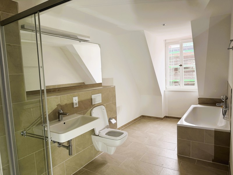 Früher bekannt als „Baderhaus“, treffen heute im „Baderhome“ Tradition und Moderne aufeinander – von außen eine wunderschöne barocke Fassade mit altehrwürdigem Charme, von innen 29 hochmoderne Neubau-Wohnungen mit einzigartigen Grundrissen für Individualisten mit Anspruch an höchsten Wohnkomfort: Eichenparkettboden mit Fußbodenheizung, dreifachverglaste Schallschutzfenster, hochwertige und vollständig ausgestattete Einbauküchen mit Markengeräten, Malervlies als Wandverkleidung, modern geflieste Bäder mit Markenarmaturen, Gegensprechanlage mit Videofunktion, Breitbandkabelanschluss in allen Räumen und viele Annehmlichkeiten mehr. Die meisten Wohnungen verfügen über einen Außenbereich in Form eines Balkons oder einer Dachterrasse. Eine Aufzugsanlage bringt Sie bequem auf Ihre gewünschte Etage. Ein Hausmeisterservice kümmert sich liebevoll um die Pflege und Instandhaltung des Objektes und der Außenanlagen.
