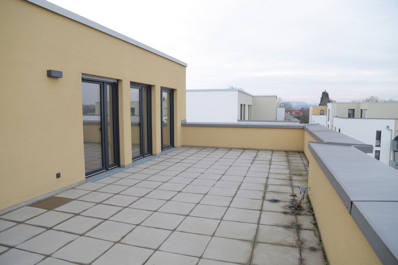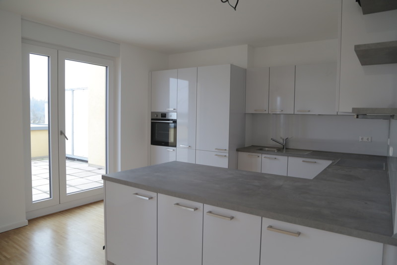 Der offene Küchenraum mit komplett neuer, moderner Einbauküche schafft ein ausgesprochen angenehmes Wohnambiente. Das Highlight der drei lichtdurchfluteten Schlafzimmer ist zweifellos der jeweils großzügige Schnitt. Das elegante Bad ist mit einer Badewanne und einem WC ausgestattet, zusätzlich verfügt die Wohnung über ein Gästebad mit Dusche und WC. Besonders bequem ist auch der Waschmaschinenanschluss in Ihrer Wohnung. Die Dachterrasse stellt höchste Wohn- und Lebensqualität sicher.