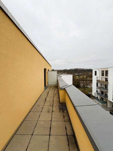 Der offene Küchenraum mit komplett neuer, moderner Einbauküche schafft ein ausgesprochen angenehmes Wohnambiente. Das Highlight der beiden Schlafzimmer ist zweifellos der großzügige Schnitt. Eines der Schlafzimmer bietet direkten Zugang zur sonnigen Dachterrasse. Das elegante Bad ist mit einer Badewanne und einem WC ausgestattet, zusätzlich verfügt die Wohnung über ein Gästebad mit Dusche und WC. Besonders bequem ist auch der Waschmaschinenanschluss in Ihrer Wohnung. Die Dachterrasse stellt höchste Wohn- und Lebensqualität sicher.