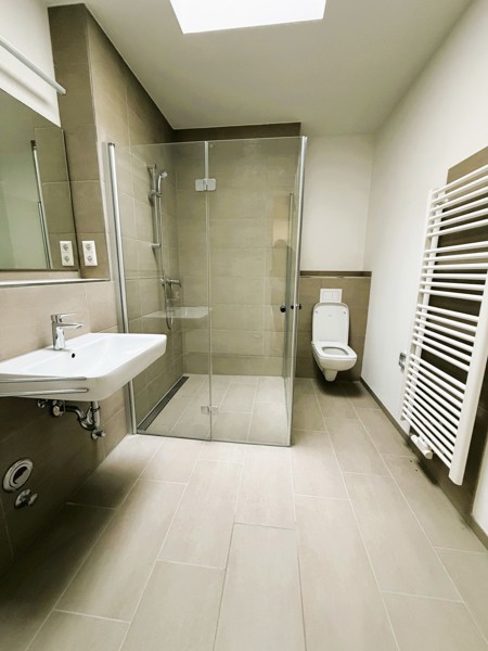 Die Ausstattung der Wohnungen lässt keine Wünsche offen: Eichenparkettboden mit Fußbodenheizung, dreifachverglaste Schallschutzfenster, hochwertige und vollständig ausgestattete Einbauküchen mit Markengeräten, Malervlies als Wandverkleidung, modern geflieste Bäder mit Markenarmaturen, Gegensprechanlage mit Videofunktion, Breitbandkabelanschluss in allen Räumen und viele Annehmlichkeiten mehr. Die meisten Wohnungen verfügen über einen Außenbereich in Form einer Terrasse, eines Balkons oder einer Dachterrasse. Jedes Haus verfügt über eine moderne Aufzugsanlage, über welche Sie bequem Ihre gewünschte Etage erreichen können. Ein Hausmeisterservice kümmert sich liebevoll um die Pflege und Instandhaltung des Objektes und der Außenanlagen.