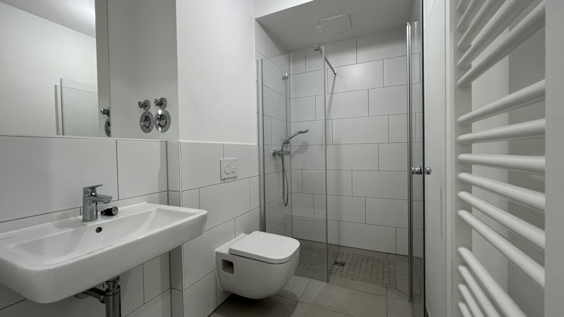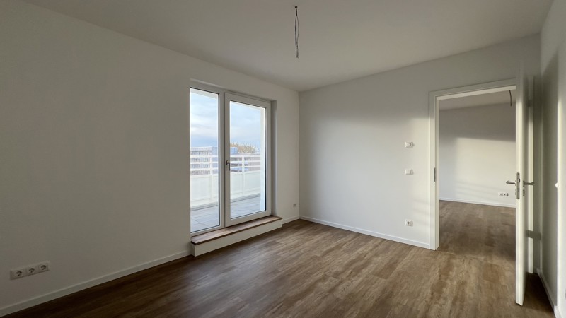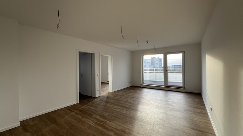 Offene Küche (keine Einbauküche) zum Wohnzimmer, Fußbodenheizung, Balkone/Terrassen, Design-Vinyl-Boden in Holzoptik, Bad mit hochwertiger Ausstattung.