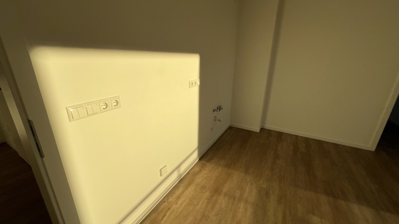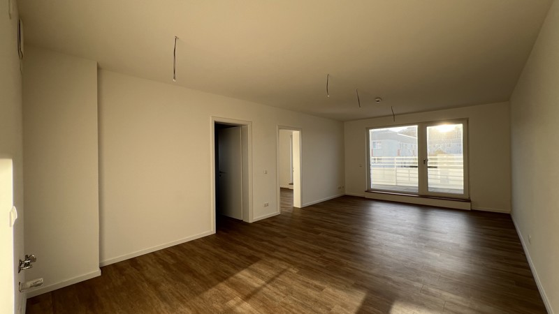 Offene Küche (keine Einbauküche) zum Wohnzimmer, Fußbodenheizung, Balkone/Terrassen, Design-Vinyl-Boden in Holzoptik, Bad mit hochwertiger Ausstattung.