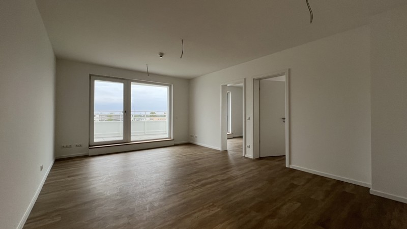 Offene Küche (keine Einbauküche) zum Wohnzimmer, Fußbodenheizung, Balkone/Terrassen, Design-Vinyl-Boden in Holzoptik, Bad mit hochwertiger Ausstattung.