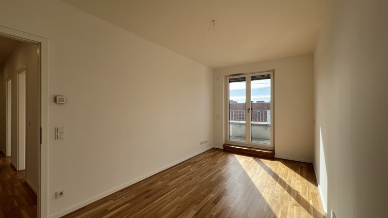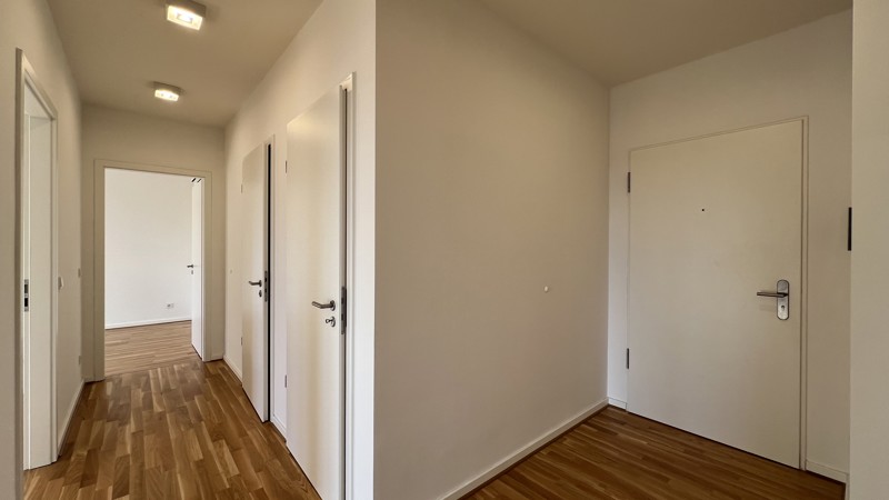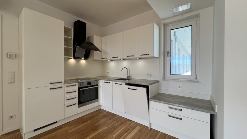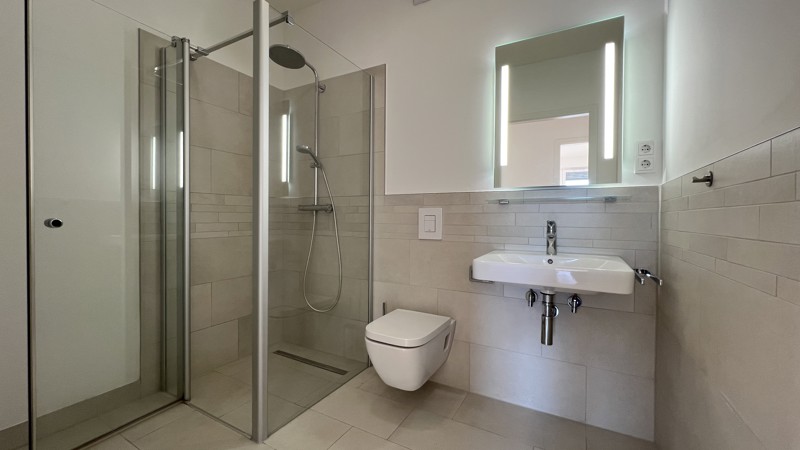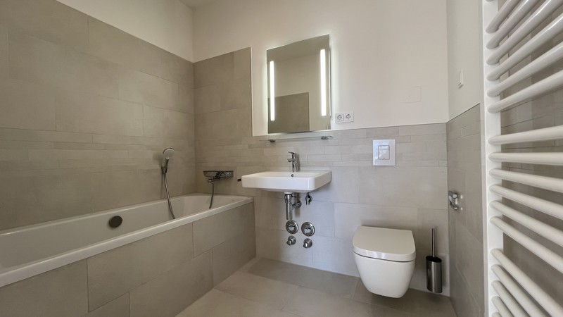 Bodentiefe Fenster lassen Licht und Luft in jedem Zimmer berauschen. Warme, aufeinander abgestimmte Kombinationen in und um die Wohnungen inspirieren und lassen Spielraum für Gestaltung. Echtholzparkett, Marken-Einbauküche incl. Geräte (Cerankochfeld, Flachschirm-Dunstabzugshaube, Kühl-Gefrierkombination, Geschirrspülmaschine, Edelstahlspüle mit Armatur), Fußbodenheizung, weiße glatte Wände, Bäder mit Marken-Sanitärobjekten, Waschtisch, verchromte Armaturen, Badewanne und/oder Dusche.