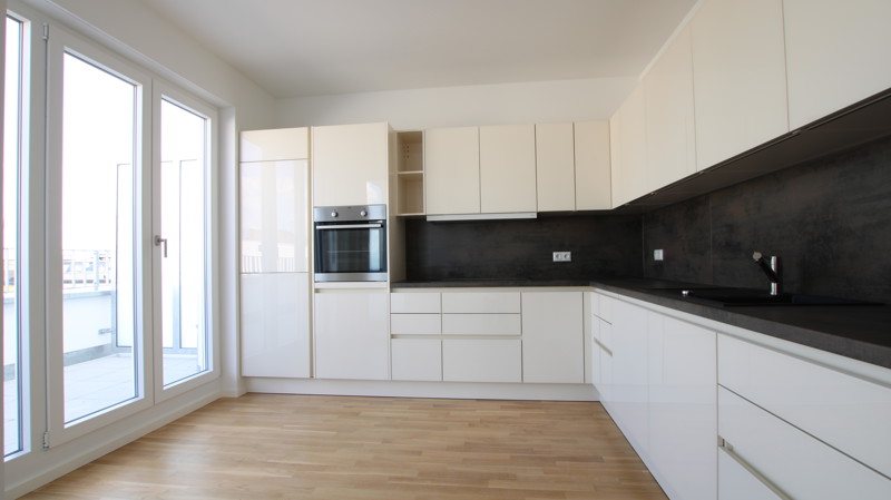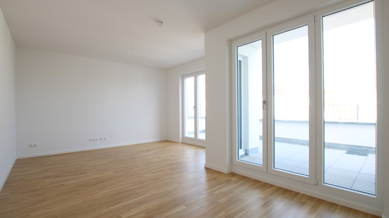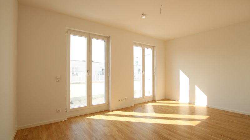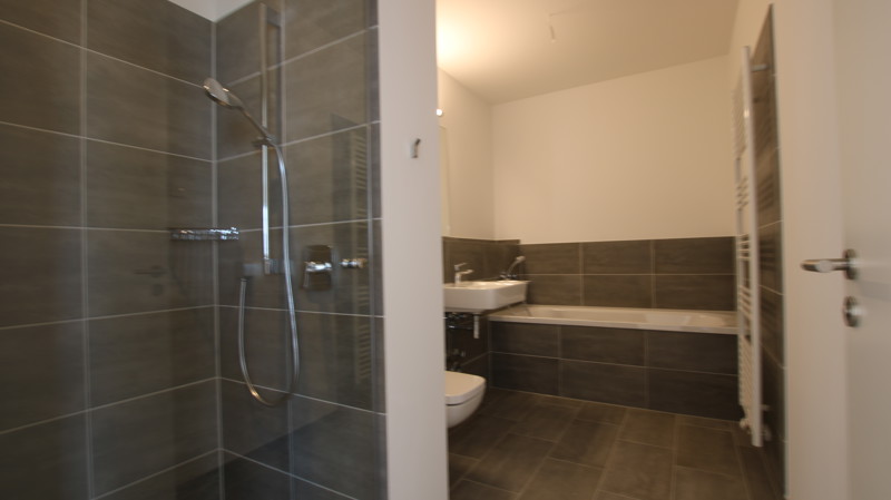 Bodentiefe Fenster lassen Licht und Luft in jedem Zimmer berauschen. Warme, aufeinander abgestimmte Kombinationen von Farben in und um die Wohnungen inspirieren und lassen Spielraum für Gestaltung. Echtholzparkett, Marken-Einbauküche incl. Geräte (Cerankochfeld, Flachschirm-Dunstabzugshaube, Kühl-Gefrierkombination, Geschirrspülmaschine, Edelstahlspüle mit Armatur), Fußbodenheizung, weiße glatte Wände, Bäder mit Marken-Sanitärobjekten, Waschtisch, verchromte Armaturen, Badewanne und/oder Dusche.