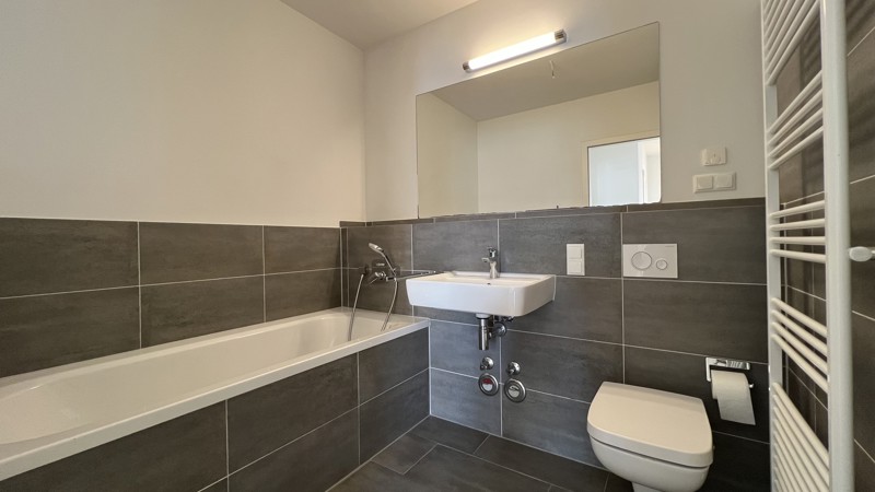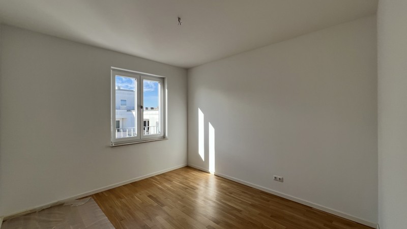 Bodentiefe Fenster lassen Licht und Luft in jedem Zimmer berauschen. Warme, aufeinander abgestimmte Kombinationen in und um die Wohnungen inspirieren und lassen Spielraum für Gestaltung. Echtholzparkett, Marken-Einbauküche incl. Geräte (Cerankochfeld, Flachschirm-Dunstabzugshaube, Kühl-Gefrierkombination, Geschirrspülmaschine, Edelstahlspüle mit Armatur), Fußbodenheizung, weiße glatte Wände, Bäder mit Marken-Sanitärobjekten, Waschtisch, verchromte Armaturen, Badewanne und/oder Dusche.