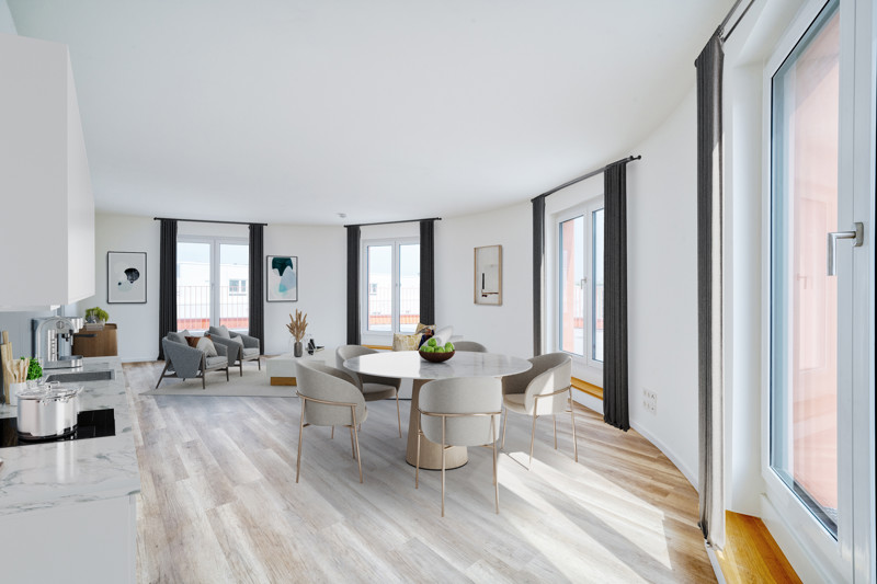 Bei der Einrichtung handelt es sich um eine digitale Einrichtung. Die gezeigten Einrichtungsgegenstände und Möbel sind nicht Bestandteil der Wohnung.
