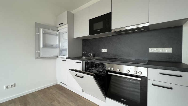 Einbauküche, Fußbodenheizung, Balkone/Terrassen, Design-Vinyl-Boden in Holzoptik, Bad mit hochwertiger Ausstattung.