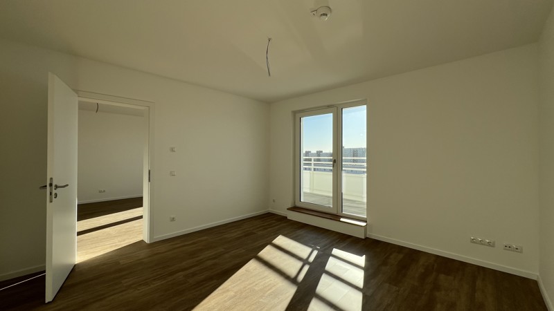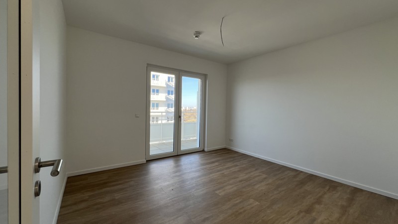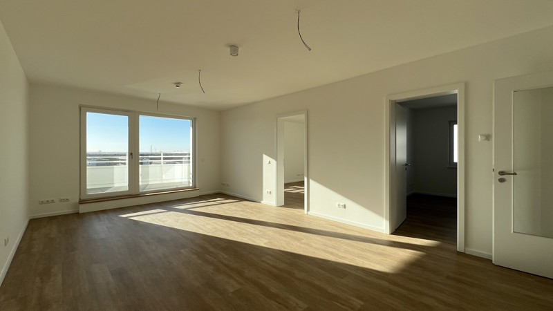 Offene Küche (keine Einbauküche) zum Wohnzimmer, Fußbodenheizung, Balkone/Terrassen, Design-Vinyl-Boden in Holzoptik, Bad mit hochwertiger Ausstattung.