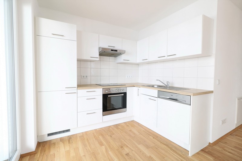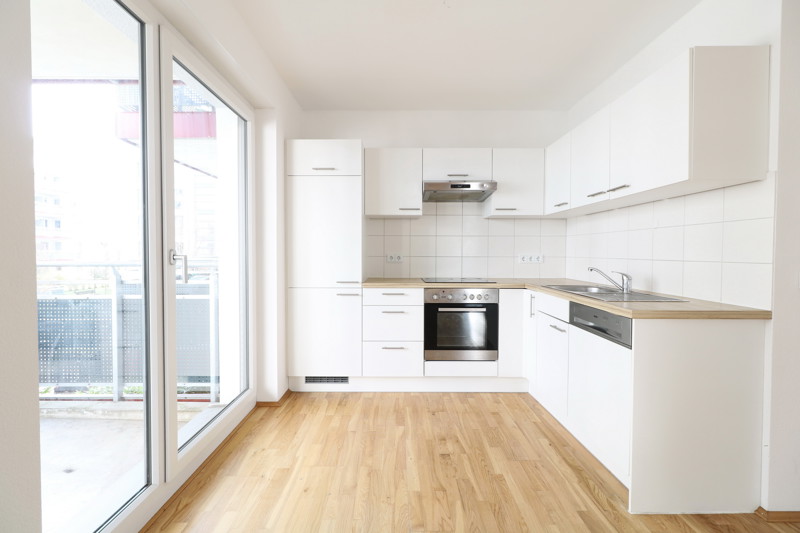 Die offene Markenküche mit Einbaugeräten ist komplett ausgestattet und bietet einen Zugang zum Balkon. Das elegante Bad ist mit Dusche und WC ausgestattet. Besonders bequem ist auch der Waschmaschinenanschluss in Ihrer Wohnung. Der große Balkon stellt höchste Wohn- und Lebensqualität sicher.