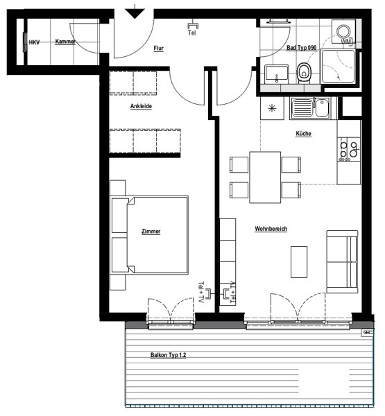 Moderne 2-Zimmer-Wohnung mit großem Balkon, moderner Einbauküche und Duschbad
