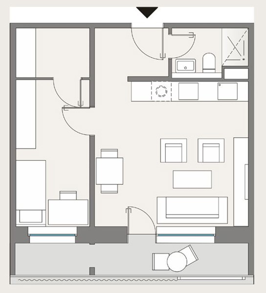 Das Wohnzimmer verfügt über einen direkten Zugang zum gemütlichen Balkon, der als privater Rückzugsort im Freien zum Entspannen einlädt. Das stilvolle Badezimmer ist mit einer eleganten Dusche sowie einem WC ausgestattet. Der Waschmaschinenanschluss befindet sich komfortabel innerhalb der Wohnung.