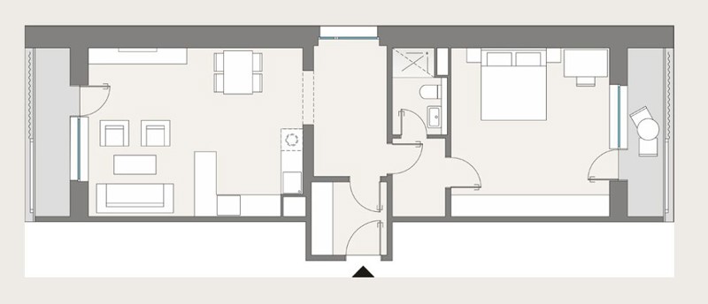 Das Schlafzimmer sowie auch der Wohnbereich verfügen über einen direkten Zugang zu einem gemütlichen Balkon, welcher als privater Rückzugsort im Freien zum Entspannen einlädt. Das stilvolle Badezimmer ist mit einer eleganten Dusche sowie einem WC ausgestattet. Der Waschmaschinenanschluss befindet sich komfortabel innerhalb der Wohnung.