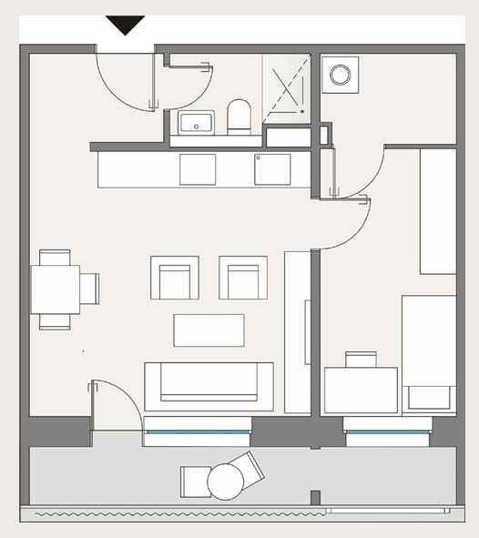 Der Wohnbereich verfügt über einen direkten Zugang zum gemütlichen Balkon, welcher als privater Rückzugsort im Freien zum Entspannen einlädt. Das stilvolle Badezimmer ist mit einer eleganten Dusche sowie einem WC ausgestattet. Der Waschmaschinenanschluss befindet sich komfortabel innerhalb der Wohnung.