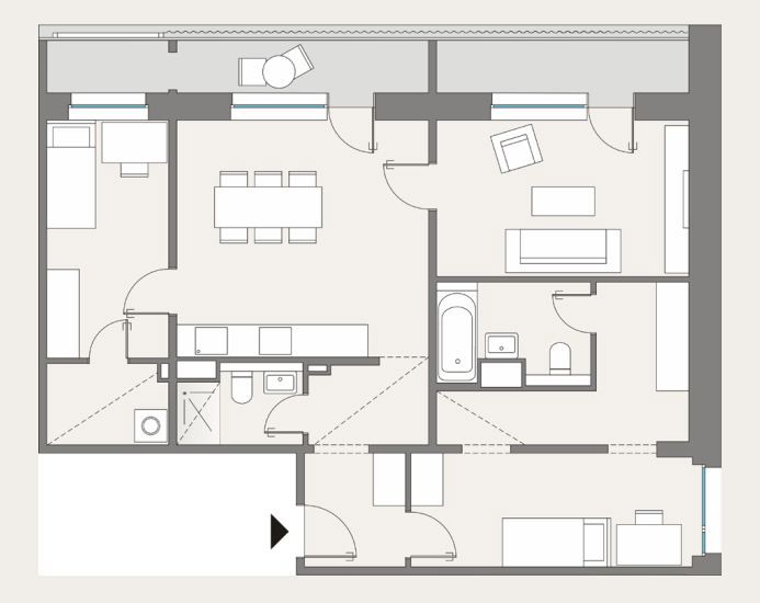 Waschmaschinenanschluss befindet sich komfortabel innerhalb der Wohnung.