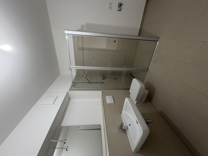 Das stilvoll gestaltete Badezimmer ist mit einer komfortablen Dusche und einem WC ausgestattet.