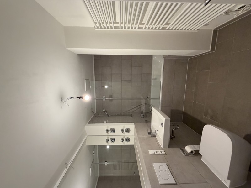 Das elegante Badezimmer ist mit einer komfortablen Dusche sowie einem WC ausgestattet. Ein eigener Waschmaschninenanschluss innerhalb der Wohnung erhöht den Wohnkomfort.