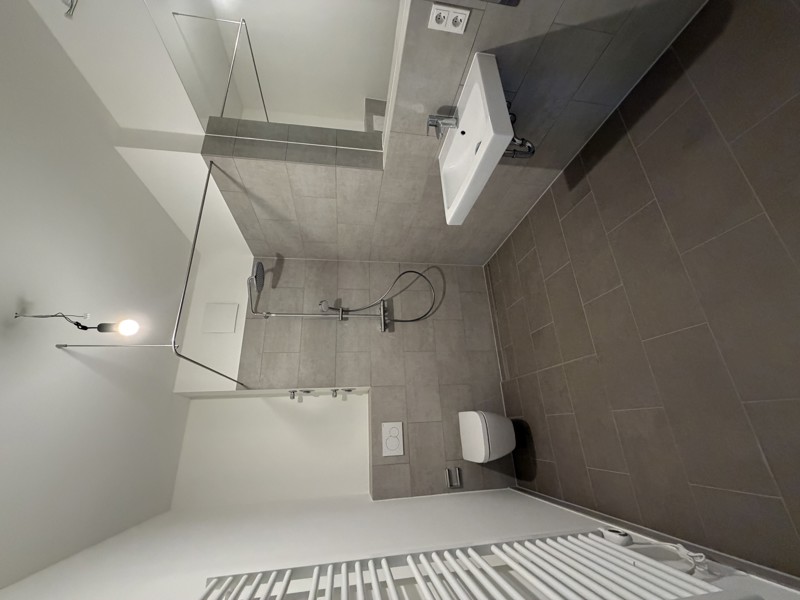 Das elegante Badezimmer ist mit einer komfortablen Dusche sowie einem WC ausgestattet. Ein eigener Waschmaschninenanschluss innerhalb der Wohnung erhöht den Wohnkomfort.