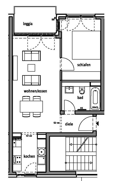Diese großzügige Etagenwohnung überzeugt mit stilvollem Eiche-Massivparkett und angenehmer Fußbodenheizung in sämtlichen Wohn- und Schlafbereichen. Die raumhohen Fenster erfüllen jeden Wunsch nach lichtdurchfluteten Räumen und verleihen dem gesamten Ambiente eine einladende Helligkeit. Die offen gestaltete Küche bietet vielfältige Möglichkeiten für individuelle Wohnideen. Das Schlafzimmer besticht durch seine beeindruckende Größe und sorgt für entspannte Rückzugsorte. Das elegante Bad ist mit Badewanne und WC ausgestattet. Besonderes Highlight ist die geräumige Loggia, die den Wohnkomfort perfekt abrundet und wertvolle Lebensqualität im Alltag schenkt.
