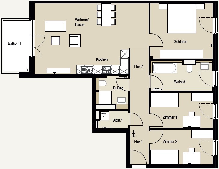Erleben Sie ein einzigartiges Wohngefühl in dieser großzügigen Etagenwohnung, die durch lichtdurchflutete Räume und exklusiven Parkettboden in allen Wohn- und Schlafbereichen begeistert. Die offene, modern gestaltete Küche mit hochwertiger Einbauküche lädt zum gemeinsamen Kochen und Wohlfühlen ein, während der praktische Abstellraum zusätzlichen Stauraum bietet. Drei besonders geräumige Schlafzimmer schaffen Ruheoasen für die ganze Familie. Das elegante Tageslichtbad überzeugt mit Badewanne und WC; ein separates Gäste-Duschbad sorgt für zusätzlichen Komfort. Ein Waschmaschinenanschluss ist direkt in der Wohnung vorhanden. Der sonnige Balkon verspricht entspannte Stunden, und Ihr PKW findet in der großzügigen Tiefgarage seinen sicheren Platz.