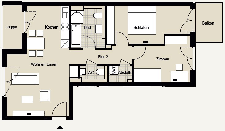 Aufzug, Balkon, Einbauküche, Gäste-WC, Hausmeister, Kabel-TV, Klingel mit Sprechanlage, Loggia, Parkett, Stellplatz, Vollbad, Waschmaschinenanschluss, Wohnküche,