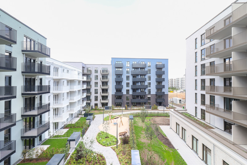 Das „karo & gold“ im Schönhofviertel bietet Ihnen 314 moderne und hochwertig ausgestattete Neubau-Wohnungen für höchste Ansprüche an Qualität und Wohnkomfort. Von 2- bis 5-Zimmern können Sie hier Ihre neue Traumwohnung finden, deren Ausstattung keine Wünsche offen lässt: Stilvolles Eiche-Echtholzparkett verströmt Wärme und Eleganz, in den Wohlfühl-Bädern erwarten Sie bodengleiche Duschen, hochwertige Sanitärobjekte und edle Fliesen. Für behagliche Wärme sorgen Fernwärme, Fußbodenheizung und Handtuchheizkörper. Die moderne Einbauküche mit Marken-Geräten lässt Genießerherzen höherschlagen. Malervlies in strahlendem Weiß, Fenster mit Rollläden und eine Video-Türsprechanlage schaffen Komfort und Sicherheit. Ein Personenaufzug, Breitbandanschluss, Fahrradstellplätze sowie eine Tiefgarage mit E-Ladestationen runden das Angebot ab. Im liebevoll angelegten Quartierspark erleben Sie echtes nachbarschaftliches Miteinander.