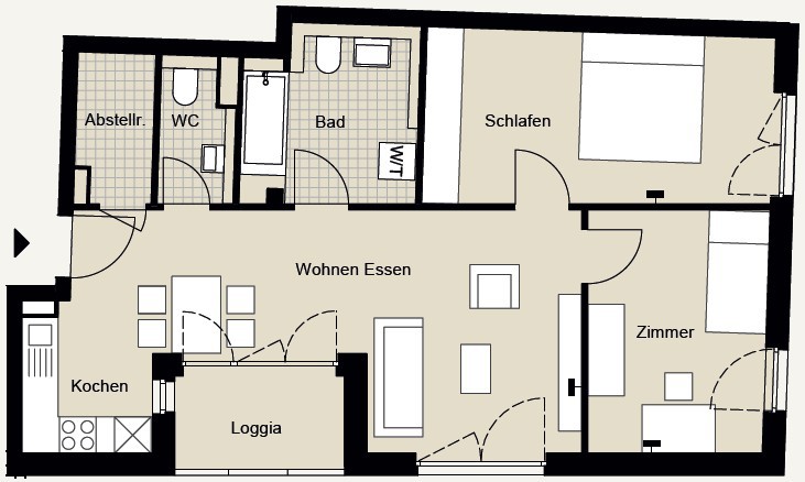 Lichtdurchflutete 3-Zimmer-Wohnung mit moderner Wohnküche, Loggia und Tiefgaragenstellplatz