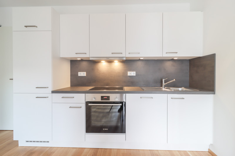 Aufzug, Balkon, Duschbad, Einbauküche, Erstbezug, Hausmeister, Klingel mit Sprechanlage, Parkett, Waschmaschinenanschluss, Wohnküche,