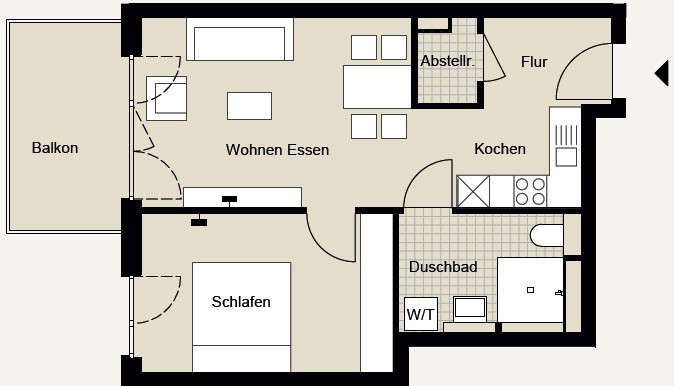 Erleben Sie modernen Wohnkomfort in dieser großzügigen Etagenwohnung: Edler Parkettboden verleiht sämtlichen Wohn- und Schlafräumen eine behagliche Atmosphäre. Große Fenster durchfluten die Räume mit Tageslicht und schaffen ein freundliches Wohnambiente. Der offene Küchenbereich mit neuer, hochwertig ausgestatteter Einbauküche lädt zum Genießen und Verweilen ein. Ein praktischer Abstellraum sorgt für zusätzlichen Stauraum und Ordnung. Das Schlafzimmer überzeugt mit seinem weitläufigen Schnitt, während das stilvolle Bad mit Dusche und WC höchsten Ansprüchen gerecht wird. Ein integrierter Waschmaschinenanschluss bietet zusätzlichen Komfort. Der sonnige Balkon garantiert entspannte Stunden im Freien. Ein Tiefgaragenstellplatz kann optional gemietet werden.