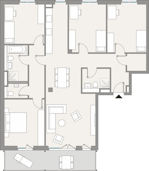 Willkommen in Ihrer großzügigen Etagenwohnung, die durch edles Parkett in allen Wohn- und Schlafräumen eine elegante Wohlfühlatmosphäre schafft. Die außergewöhnlich hellen Räume laden zum Entspannen ein und werden durch den offenen Küchenbereich mit nagelneuer, moderner Einbauküche stilvoll ergänzt. Ein praktischer Abstellraum sorgt für die nötige Ordnung. Vier lichtdurchflutete Schlafzimmer, eines davon mit direktem Zugang zum Balkon, bieten vielfältige Gestaltungsmöglichkeiten. Das exklusive Bad überzeugt mit Wanne, Dusche und WC, ergänzt von einem Gäste-Bad mit Dusche und WC sowie einem separaten Gäste-WC. Zum Komfort zählen außerdem ein eigener Waschmaschinenanschluss, Balkon, Kellerraum und ein großzügiger Tiefgaragenplatz.