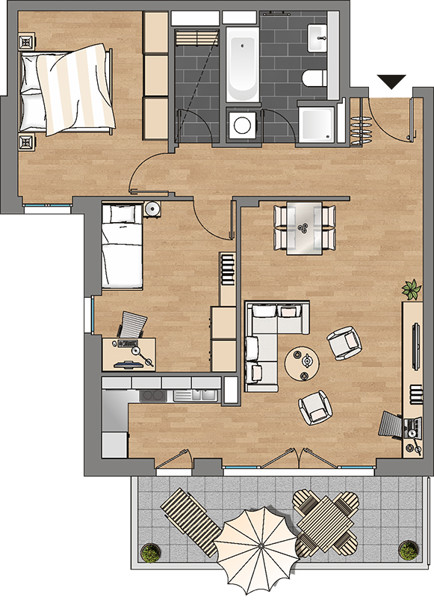 Es erwarten Sie 6 Mehrfamilienhäuser mit insgesamt 132 Wohnungen. Jede Wohnung verfügt, je nach Etage, entweder über einen eigenen Gartenbereich, einen Balkon, Loggia oder eine Dachterrasse. Die Ausstattung lässt keine Wünsche offen: Dreifachverglaste Schallschutzfenster, hochwertige und vollständig ausgestattete Einbauküchen, Malervlies als Wandverkleidung, modern geflieste Bäder mit Markenarmaturen, Breitbandkabelanschluss in allen Räumen und viele Annehmlichkeiten mehr. Das Projekt wurde nach KFW-70-Standard erbaut, die Verbrauchskosten der Heizung können somit spürbar verringert werden. Die Wohnräume sind zusätzlich mit einer zentralen Be- und Entlüftungsanlage ausgestattet, was den Energieverbrauch weiter reduziert. Der Außenbereich wird intensiv begrünt, so dass hier ein eigener, kleiner Park vor der Haustür entsteht.