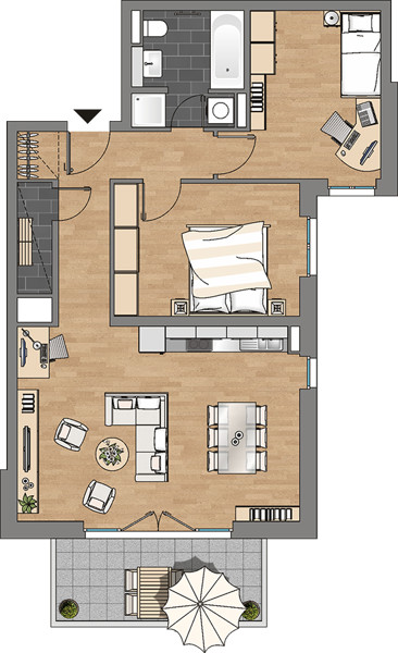 Es erwarten Sie 6 Mehrfamilienhäuser mit insgesamt 132 Wohnungen. Jede Wohnung verfügt, je nach Etage, entweder über einen eigenen Gartenbereich, einen Balkon, Loggia oder eine Dachterrasse. Die Ausstattung lässt keine Wünsche offen: Dreifachverglaste Schallschutzfenster, hochwertige und vollständig ausgestattete Einbauküchen, Malervlies als Wandverkleidung, modern geflieste Bäder mit Markenarmaturen, Breitbandkabelanschluss in allen Räumen und viele Annehmlichkeiten mehr. Das Projekt wurde nach KFW-70-Standard erbaut, die Verbrauchskosten der Heizung können somit spürbar verringert werden. Die Wohnräume sind zusätzlich mit einer zentralen Be- und Entlüftungsanlage ausgestattet, was den Energieverbrauch weiter reduziert. Der Außenbereich wird intensiv begrünt, so dass hier ein eigener, kleiner Park vor der Haustür entsteht.