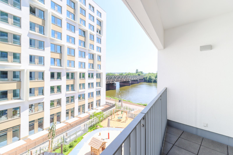 Im „Sky and Water“ erwarten Sie 127 moderne und hochwertig ausgestattete Neubau-Wohnungen von 2 bis 5 Zimmern für alle Ansprüche und Wünsche. Ob uneingeschränkter Blick auf die sanften Wellen des Mains, die einmalige Frankfurter Skyline oder das beeindruckende Panorama des Taunus – hier ist alles möglich. Die Ausstattung lässt keine Wünsche offen: Jede Wohnung verfügt über eine qualitativ hochwertige Einbauküche mit BOSCH-Markengeräten, modern geflieste Bäder mit Markenarmaturen und je nach Wohnungstyp ebenerdiger Dusche und / oder Badewanne, mit weißem Malervlies tapezierte Wände, Wohnräume mit Echtholz-Eichenparkettboden und Fußbodenheizung, rundherum bodentiefe Fenster mit elektrischen Außenrollläden, eine praktische HOMEWAY-Verkabelung in allen Zimmern und viele Annehmlichkeiten mehr. Abgerundet wird das Angebot durch eine moderne Aufzugsanlage, ein sicheres Kellerabteil, abschließbare Fahrradkeller sowie großzügig bemessene, ebenerdige Tiefgaragen-Stellplätze.