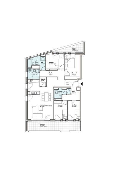 Genießen Sie das stilvolle Wohngefühl dieser großzügigen Etagenwohnung, in der hochwertiges Parkett für eine elegante Atmosphäre sorgt. Bodentiefe Fenster lassen alle Wohn- und Schlafräume in hellem Tageslicht erstrahlen. Die moderne, neue Einbauküche im offenen Wohnbereich lädt zum Genießen und Beisammensein ein, während ein praktischer Abstellraum für Ordnung sorgt. Vier großzügig geschnittene Schlafzimmer mit jeweils eigenem Zugang zu den beiden Balkonen bieten Ihnen komfortable Rückzugsorte. Das exklusive Tageslichtbad mit Wanne, Dusche und WC sowie zwei weitere Gäste-Bäder – eines mit Dusche, eines mit Fenster – ergänzen das durchdachte Raumangebot. Ein Waschmaschinenanschluss in der Wohnung, ein zusätzlicher Kellerraum sowie zwei breite Tiefgaragenplätze runden dieses attraktive Angebot ab.