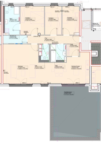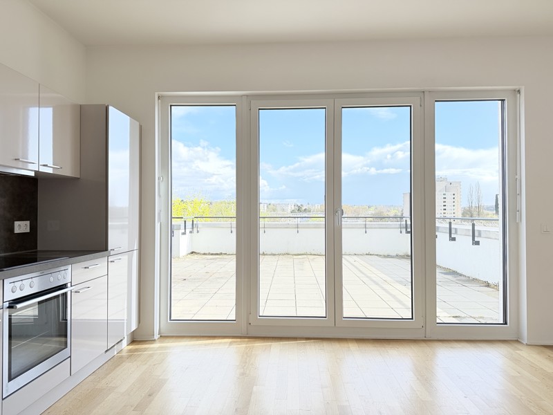 Der weitläufige Wohn- und Essbereich mit offener Küche bildet das Herzstück der Wohnung und bietet direkten Zugang zur großzügigen Dachterrasse – ein exklusiver Rückzugsort mit viel Platz zum Entspannen und Genießen. Mehrere komfortable Schlafzimmer eröffnen flexible Nutzungsmöglichkeiten als Eltern-, Kinder-, Gäste- oder Arbeitszimmer. Das Hauptschlafzimmer wird durch einen praktischen Ankleidebereich ergänzt.