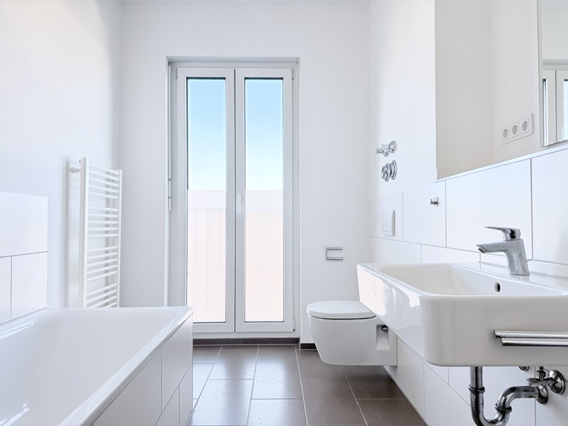 Zwei hochwertig ausgestattete Bäder – eines mit Badewanne, Dusche und WC, das andere mit Dusche und WC – bieten höchsten Komfort für die ganze Familie und Gäste. Ein zusätzlicher Hauswirtschaftsraum mit Waschmaschinenanschluss sorgt für praktische Funktionalität im Alltag.