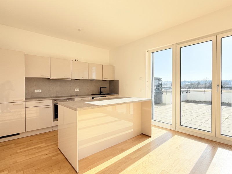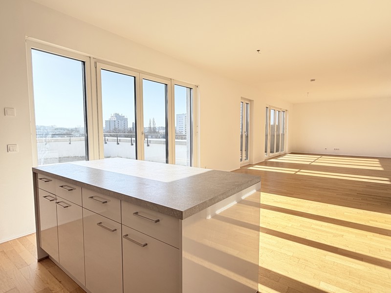 Der weitläufige Wohn- und Essbereich mit offener Küche bildet das Herzstück der Wohnung und bietet direkten Zugang zur großzügigen Dachterrasse – ein exklusiver Rückzugsort mit viel Platz zum Entspannen und Genießen. Mehrere komfortable Schlafzimmer eröffnen flexible Nutzungsmöglichkeiten als Eltern-, Kinder-, Gäste- oder Arbeitszimmer. Das Hauptschlafzimmer wird durch einen praktischen Ankleidebereich ergänzt.
