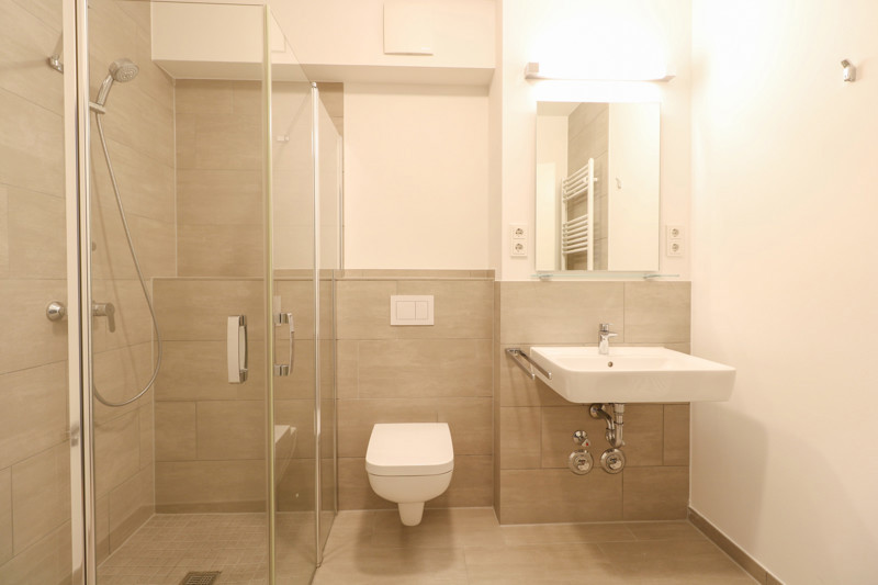 Die offene Markenküche mit Einbaugeräten ist komplett ausgestattet und schafft ein ausgesprochen angenehmes Wohnambiente. Der zusätzliche Abstellraum schafft Platz. Das Highlight der beiden Schlafzimmer ist zweifellos der jeweils direkte Zugang zum Balkon. Das elegante Bad ist mit Badewanne und WC ausgestattet. Das zweite Bad besticht durch eine Dusche und WC. Besonders bequem ist auch der Waschmaschinenanschluss in Ihrer Wohnung. Die beiden Balkone stellen höchste Wohn- und Lebensqualität sicher.