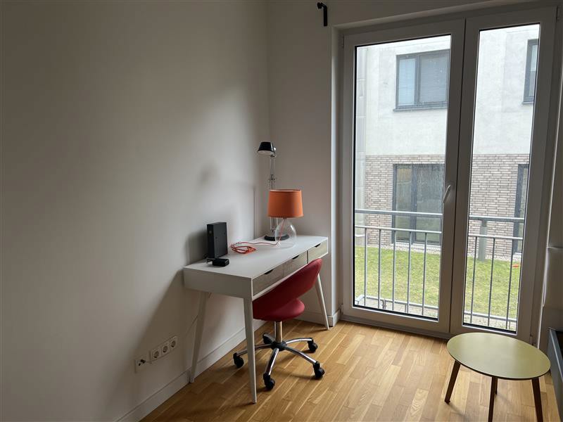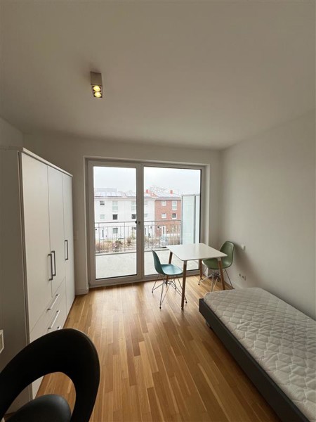 Der edle Eichenholzfußboden verleiht dem Zimmer eine warme, zeitlose Atmosphäre. Das Zimmer ist voll möbliert – Kleiderschrank, Bett, Schreibtisch und Stuhl stehen bereits zur Verfügung, sodass Sie ab sofort ohne zusätzlichen Aufwand einziehen können.