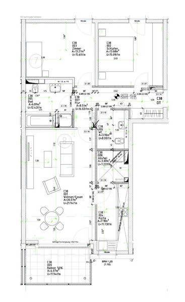 Ein praktischer Abstellraum innerhalb der Wohnung sorgt für wertvollen Stauraum und unterstreicht die durchdachte Funktionalität dieses attraktiven Grundrisses. Große Fensterflächen schaffen helle, freundliche Räume und verleihen der Wohnung eine einladende Wohnatmosphäre.