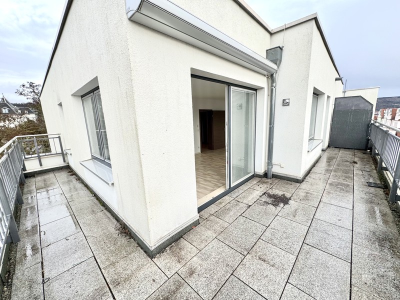 Helle 3-Zi.-Dachgeschosswohnung mit 2 Bädern, EBK und Terrasse mit Weitblick
