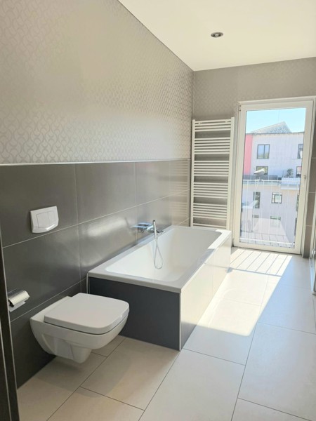 Erleben Sie Wohnkomfort auf zwei Ebenen: Diese attraktive Maisonette überzeugt durch lichtdurchflutete Wohn- und Schlafräume, edel ausgestattet mit hochwertigem Laminat und behaglicher Fußbodenheizung. Der Kochbereich mit direktem Terrassenzugang lädt zu geselligem Beisammensein ein, während ein praktischer Abstellraum für zusätzlichen Stauraum sorgt. Besonders hervorzuheben ist das weitläufige Schlafzimmer mit eigenem Zugang zur großzügigen Terrasse, die Ihnen zu jeder Tageszeit höchsten Wohn- und Lebensgenuss bietet. Das stilvolle Tageslichtbad mit Badewanne, Dusche und WC sowie ein separates Gäste-WC runden das Raumangebot ab. Ein Außenstellplatz oder eine Garage kann optional angemietet werden und rundet dieses attraktive Wohnangebot ab.
