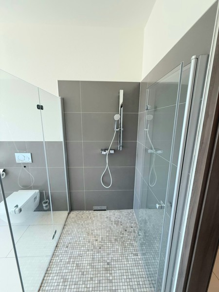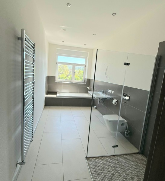 Das großzügige Schlafzimmer überzeugt durch seine angenehme Größe und Helligkeit. Das Tageslichtbad ist mit einer Dusche, Badewanne und WC ausgestattet.