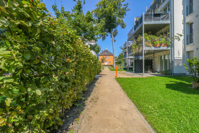 An der Escher Straße (einer Tempo-30-Zone) entstand die sehr ansprechende Anlage mit 2 Stadthäusern und 4 gediegenen Mehrfamilienhäusern mit insgesamt 46 Wohneinheiten. Auf dem Grundstück blieben über 50 Bäume des alten Baumbestandes erhalten und schaffen ein wunderbares Wohlfühlklima. Von den sehr gut geschnittenen 2-Zimmer-Wohnungen über lichtdurchflutete Dachgeschoßwohnungen bis hin zum Reihenhaus ist für jeden Geschmack etwas Passendes zu finden. Alle Wohneinheiten verfügen über einen großzügigen Balkon oder eine Terrasse, die nach Süden oder Südwesten ausgerichtet sind. Einige Wohnungen sind barrierefrei gebaut und mit Ausnahme der Stadthäuser bringen moderne Aufzugsanlagen die Bewohner komfortabel auf die Etage.