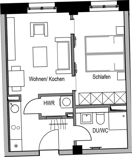 1,5-Zimmer-Single-Appartment mit EBK und schickem Duschbad