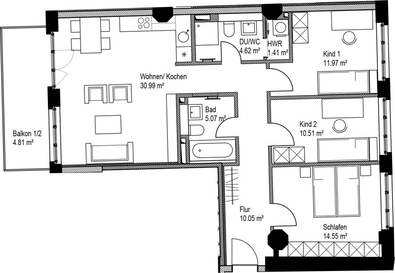- großer Balkon zum Entspannen im Freien