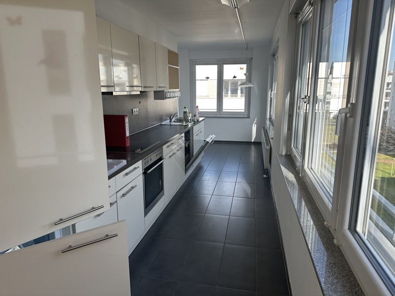 Der helle Wohn- und Essbereich bildet das Herzstück der Wohnung und bietet ausreichend Raum für gemütliche Stunden mit Familie und Freunden. Große Fenster sorgen für eine freundliche und lichtdurchflutete Atmosphäre.
