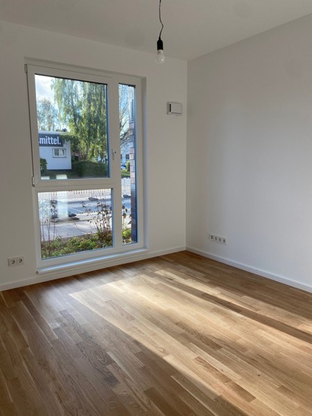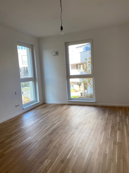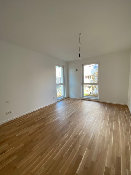 Diese gut geschnittene 3-Zimmer-Wohnung befindet sich im Erdgeschoss einer hochwertigen Neubauwohnanlage mit Fahrstuhl und Tiefgarage. Wohn-/Essbereich mit vorgelagertem Balkon zum Garten. Separate Wohnküche mit Einbauküche in Komplettausstattung, zwei gut belichtete Schlafzimmer. Ein modernes Duschbad mit ebenerdiger Dusche, ein Abstellraum mit Waschmaschinenanschluss innerhalb der Wohnung sowie eine geräumige Diele mit Videogegensprechanlage vervollständigen den Grundriss. Der fest zugeordnete Tiefgaragenstellplatz in der hauseigenen Tiefgarage kostet EUR 90,00 im Monat und ist im Gesamtpreis bereits enthalten.